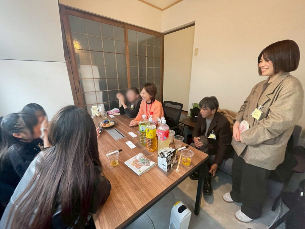 その後は、近況のお話や日常の出来事などを共有しながら、和やかな雰囲気の中で交流の時間を過ごしました。小学生も交えて簡単な食事を囲み、多世代が同じ空間で自然に会話を楽しむ姿が見られました。参加者の皆さまからは、「ゆっくり話せて良かった」「楽しい時間だった」といった声も聞かれ、終始あたたかな時間となりました。